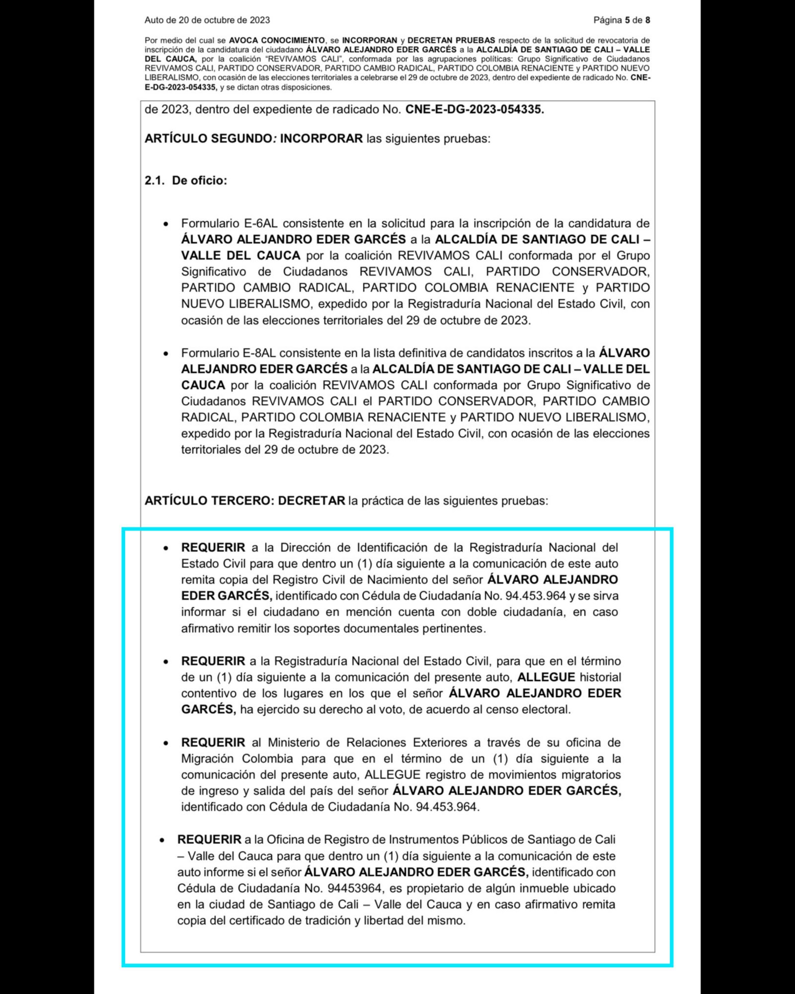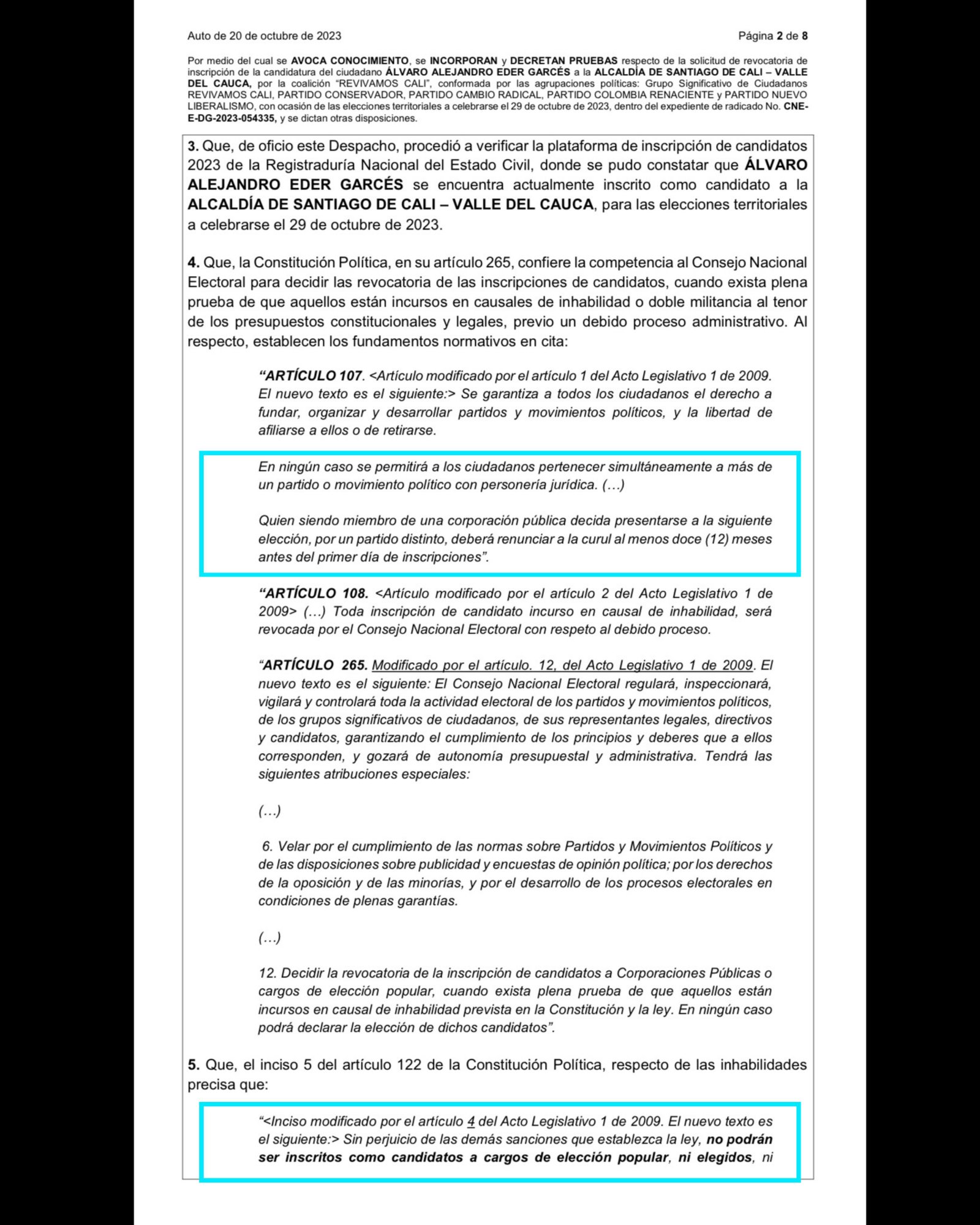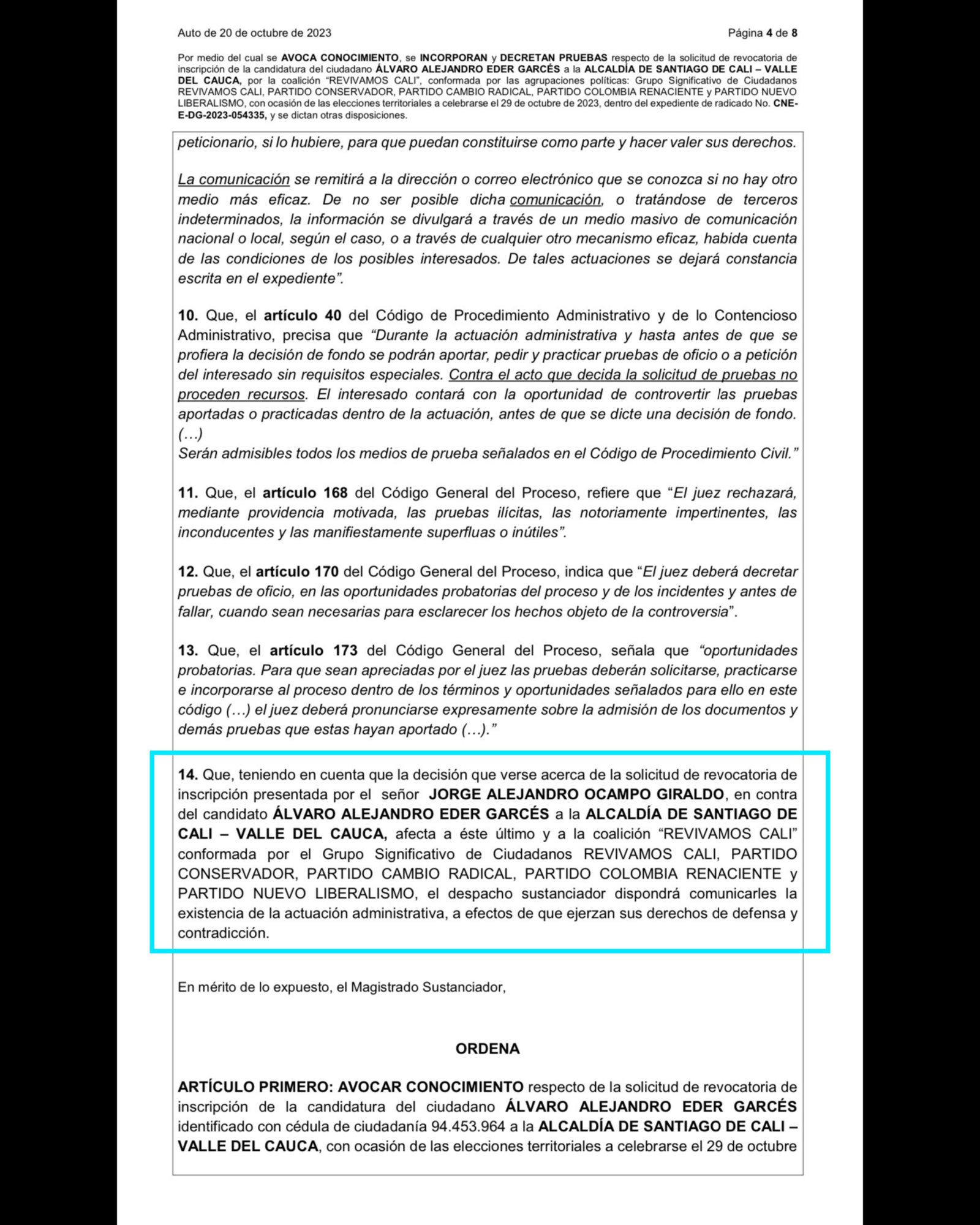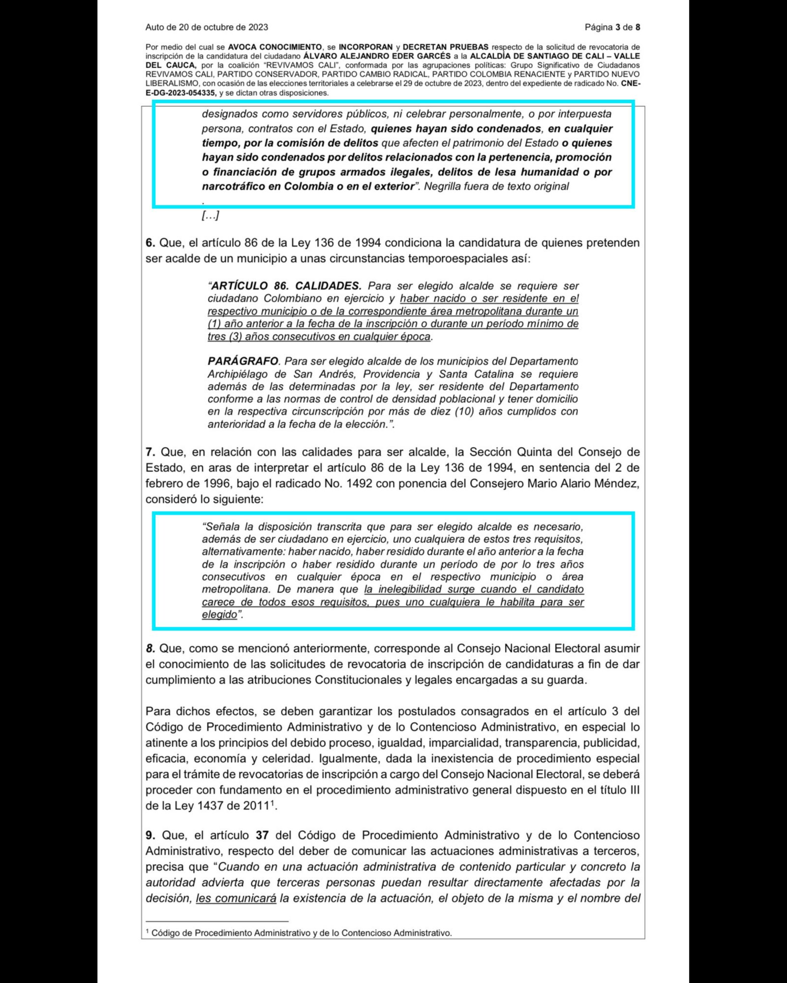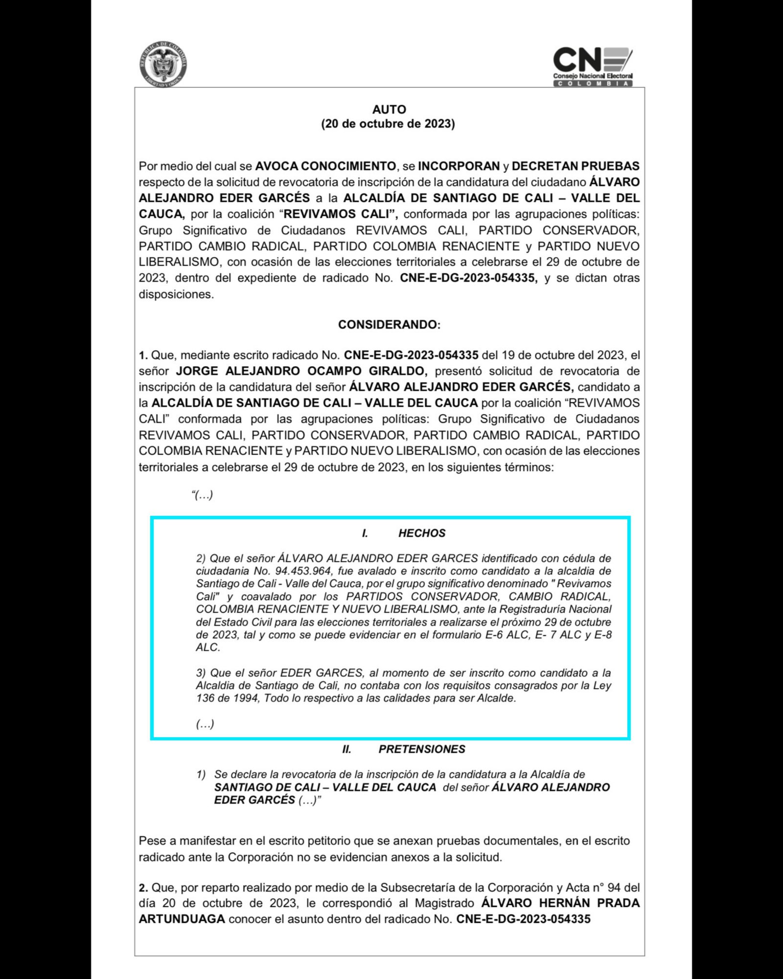 El CNE ha dado inicio al proceso legal correspondiente para evaluar los argumentos presentados en la demanda y determinar si Alejandro Eder puede continuar en la contienda electoral.