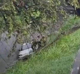 Hace pocos minutos un vehículo más cayo en un canal de aguas lluvias.