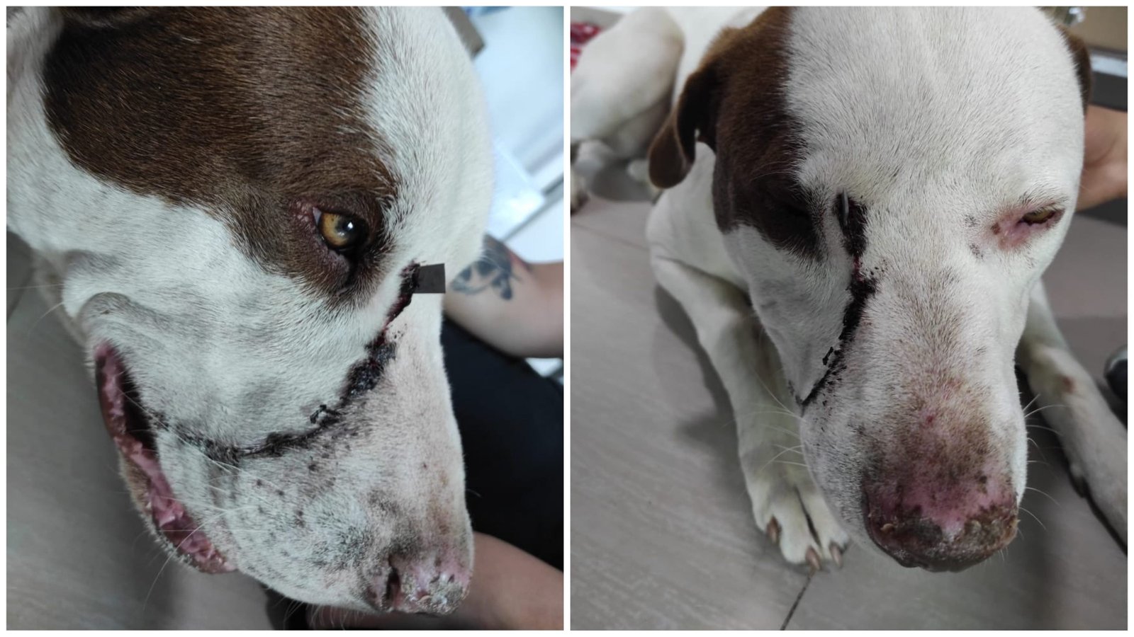 El perro fue lesionado en su ojo derecho con unas tijeras y fue trasladado a una clínica veterinaria donde le realizaron una cirugía.