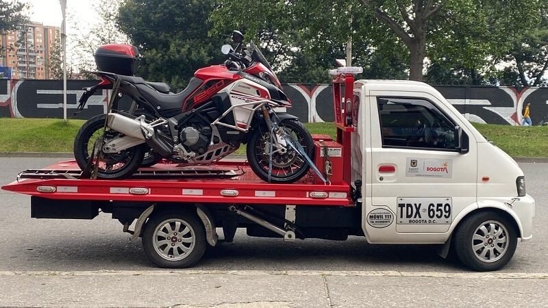 Posteriormente, el hombre le ayudó a bajar la moto de la grúa, aun estando presencia del tránsito, y finalmente se fueron del lugar sin ser retenidos.