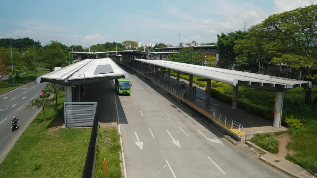 Uno de los primeros pilares de este plan fue consolidar alianzas estratégicas para la transición energética en el Terminal Simón Bolívar del MIO, donde se instaló un sistema de paneles solares; la implementación de seis estaciones de recarga en la plazoleta Jairo Varela o la Granja Solar Mulaló, que tendrá una capacidad instalada de 70 MW a partir de energía solar fotovoltaica.