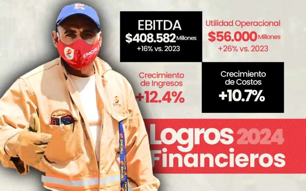 Según el informe con corte a septiembre de 2024, EMCALI obtuvo un EBITDA (beneficios antes de intereses, impuestos, depreciación y amortización) de $408.582 millones de pesos, lo que representa una mejora del 16% frente a la vigencia inmediatamente anterior.