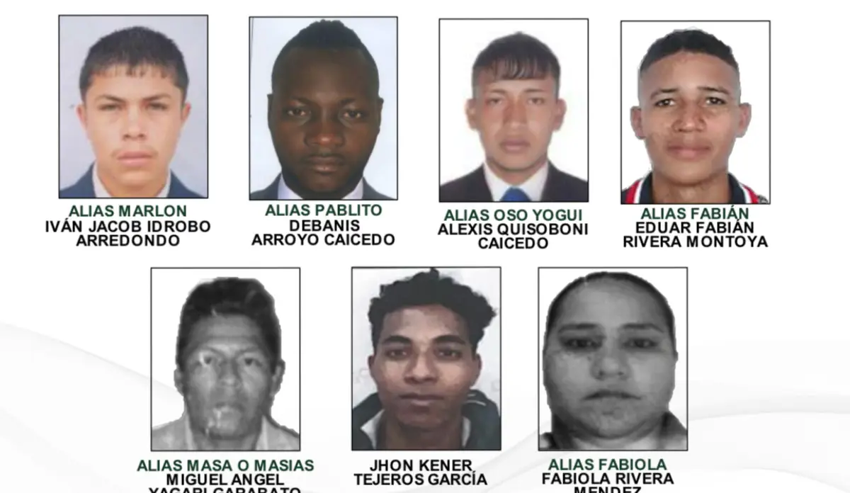 Entre los señalados aparecen: alias Marlon (Iván Jacob Idrobo Arredondo), alias Pablito (Debanis Arroyo Caicedo), alias Oso Yogui (Alexis Quisoboni Caicedo) y alias Fabián (Eduar Fabián Rivera Montoya). Así como, alias Masa o Masías (Miguel Ángel Yagari Garabato), además de Jhon Kener Tejeros García y Fabiola Rivera Méndez.