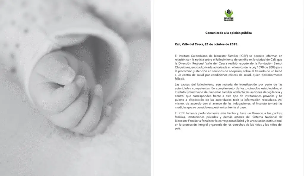 Las autoridades en Cali investigan las circunstancias que rodearon la muerte de un bebé de dos meses en la Fundación Chiquitines, ubicada en el barrio Ciudad Jardín. El Instituto Colombiano de Bienestar Familiar (ICBF) confirmó que el menor fue trasladado en estado crítico a un centro médico, donde posteriormente falleció.