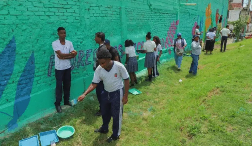 El mural “Charco Azul de colores biodiversos” se convirtió en el corazón del proyecto. Con el apoyo de la Fundación Pintuco, artistas locales y voluntarios de la comunidad plasmaron una obra colectiva que representa la vida, la unión y la diversidad del territorio. Más que una intervención estética, el mural funciona como una herramienta pedagógica que invita a cuidar el entorno y a reconocer el poder del arte en la reconstrucción social.