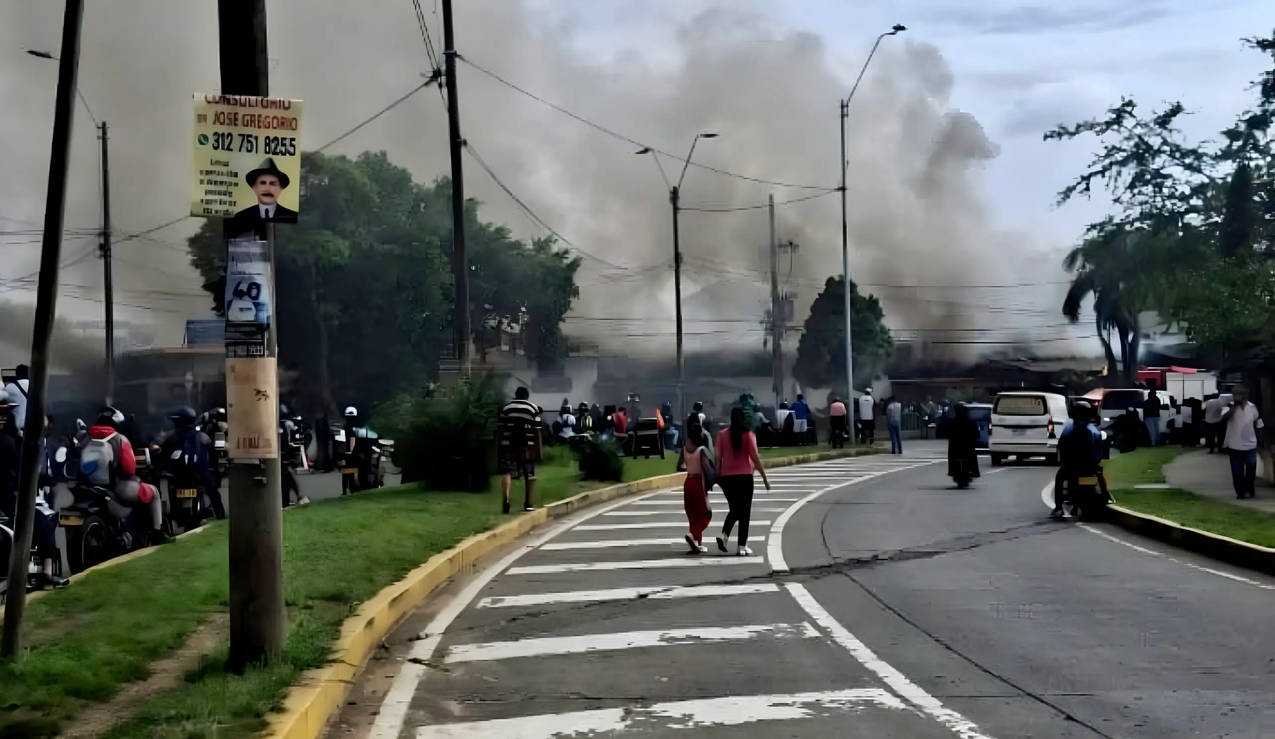 El Sistema Distrital de Gestión del Riesgo activó su protocolo de respuesta, mientras las cuadrillas del Cuerpo de Bomberos Voluntarios de Cali trabajaban para contener las llamas y evitar que el fuego se propague a viviendas vecinas.