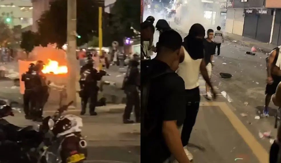 En la noche de este martes 25 de noviembre, se presentan alteraciones de orden público en el centro de Cali. Ciudadanos, algunos de ellos encapuchados, protagonizan confrontaciones con policías de la Unidad de Diálogo y Mantenimiento del Orden (Undmo) —antiguo Esmad— por operativos a presunta mercancía ilegal.