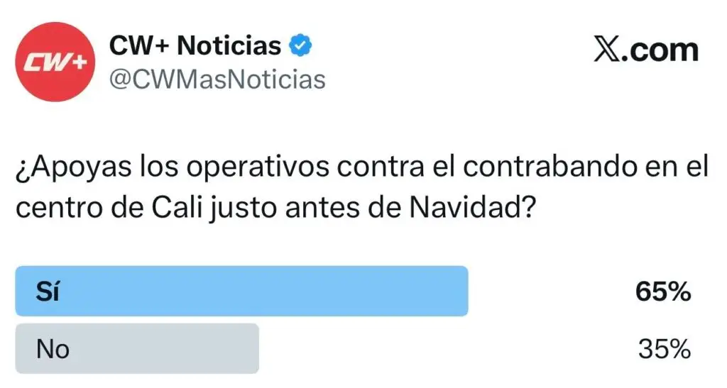 En X, Instagram y Facebook se realizó la pregunta: “¿Apoyas los operativos contra el contrabando en el centro de Cali justo antes de Navidad?”.