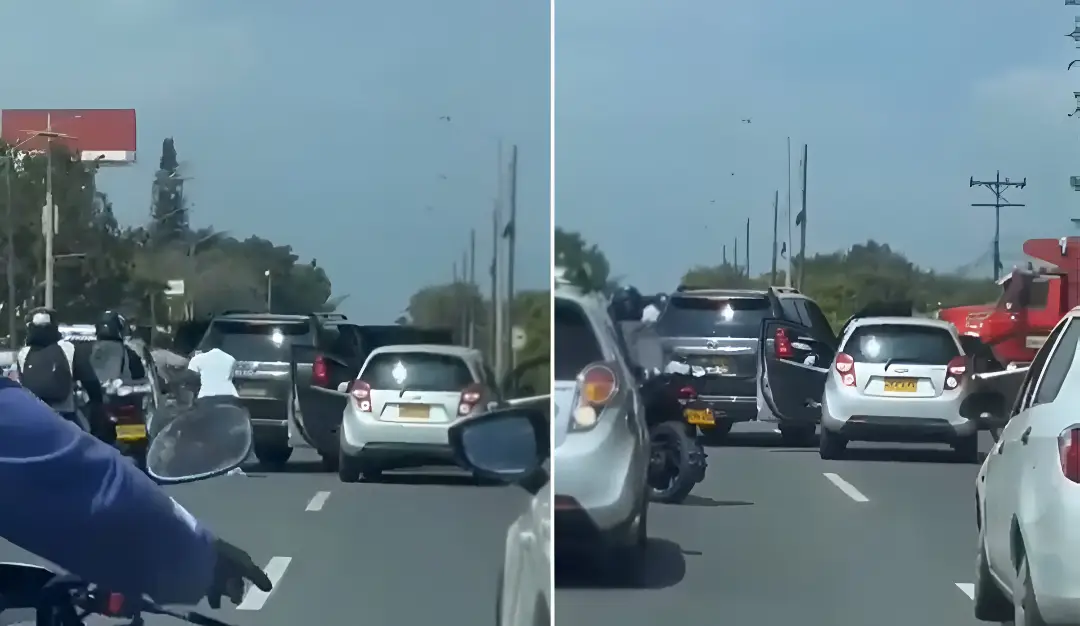 En un video difundido en redes sociales este 28 de noviembre, se observa cómo un hombre que, al parecer, trabaja en transporte informal en Jamundí fue interceptado por tres sujetos en una camioneta gris TXL, mientras circulaba por la vía Panamericana, sector La María, en la comuna 22. Los agresores emprendieron la huida inmediatamente después del abordaje.