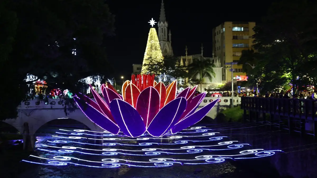 Bajo el concepto “La Sucursal de la Navidad”, la ciudad presenta su alumbrado navideño con una propuesta inspirada en su biodiversidad y en una reinterpretación del viaje de María y José hacia Belén, llevándolo al Valle del Cauca.