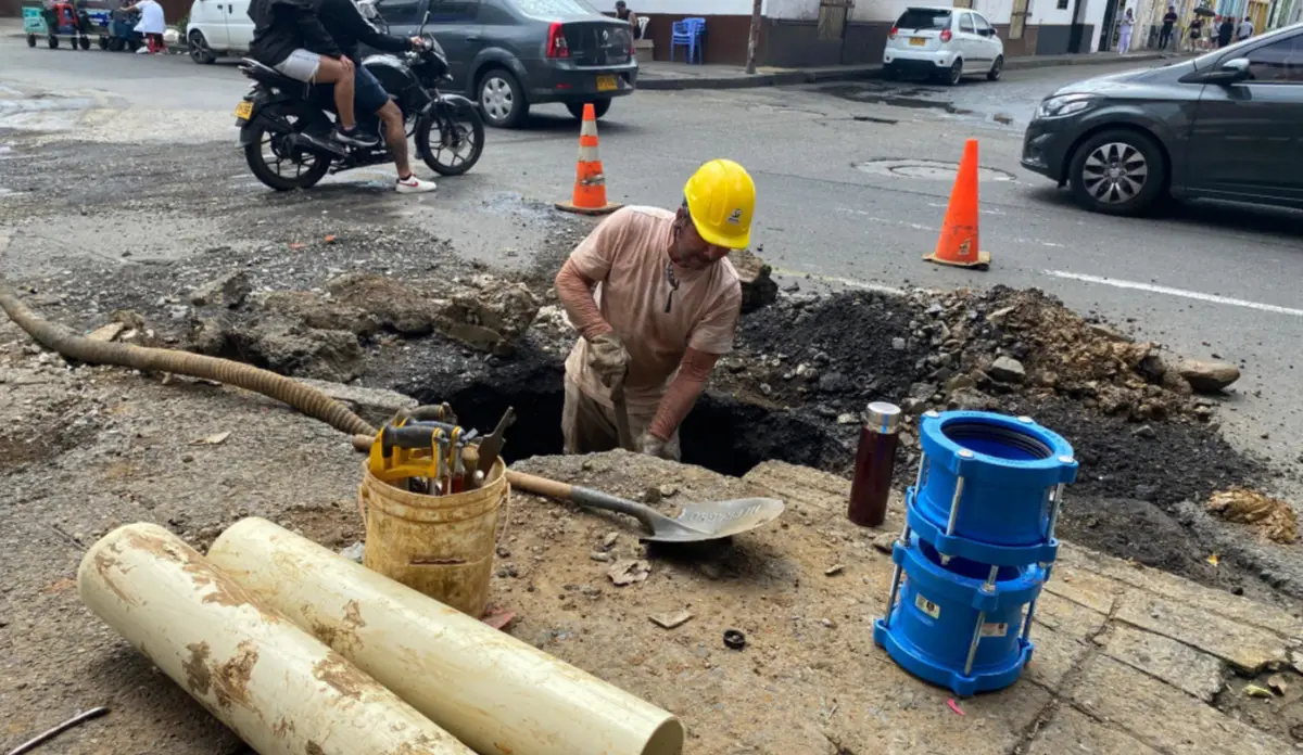 En el sistema de acueducto, se adelantan reparaciones en dos sectores del sur de Cali. Uno de los puntos intervenidos está ubicado en el barrio El Ingenio, en la carrera 85 con calle 14 A, donde se realizan trabajos correctivos.