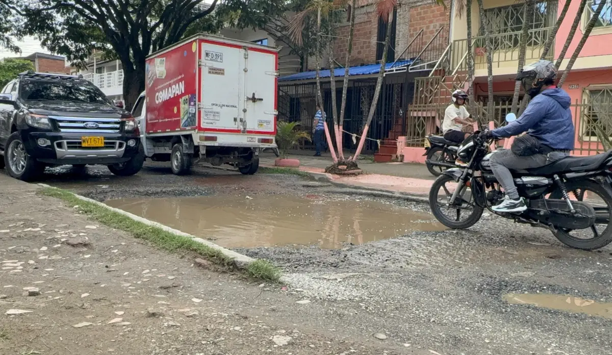 Arturo Cifuentes, vocero comunitario, explicó que el sector soporta una carga vehicular que no corresponde a una vía en esas condiciones. Aseguró que el daño se ubica justo en la entrada de la cuadra, donde incluso quedan expuestos hierros de la malla vial, evidencia del avanzado estado de deterioro y del riesgo para peatones, motociclistas y conductores.
