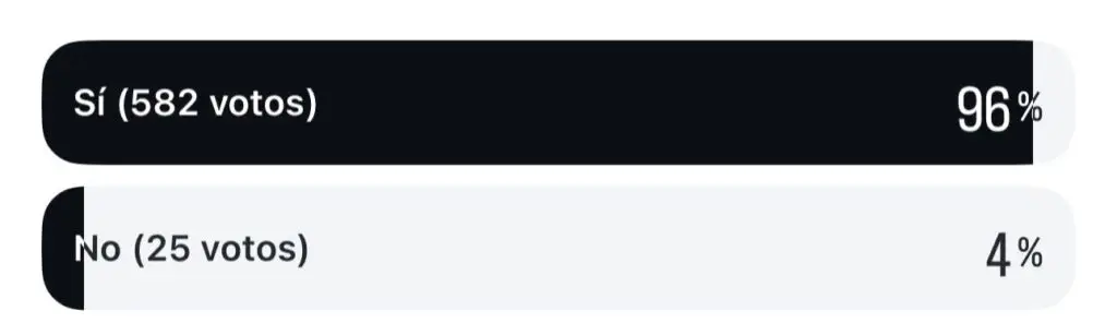 La tendencia se mantuvo muy similar en la red social X. En esta plataforma, donde participaron 390 ciudadanos, el 93% de los votantes aseguró que la ciudad requiere de mayor acompañamiento policial en las calles. Solo un 7% de los participantes en se mostró en desacuerdo con la medida.