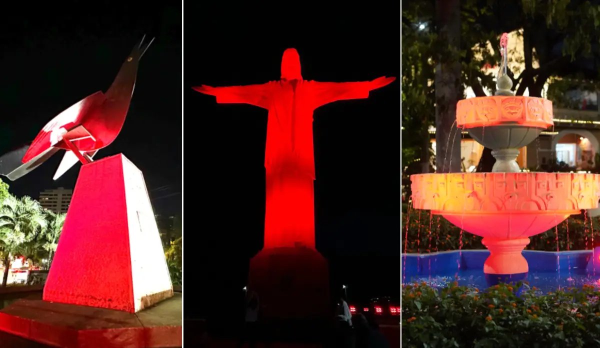 La jornada incluyó la iluminación del Teatro Municipal Enrique Buenaventura, la escultura María Mulata, la Fuente El Peñón, el monumento a Francisco de Paula Santander y el Cristo Rey. En todos estos lugares, el rojo se convirtió en protagonista durante la noche.
