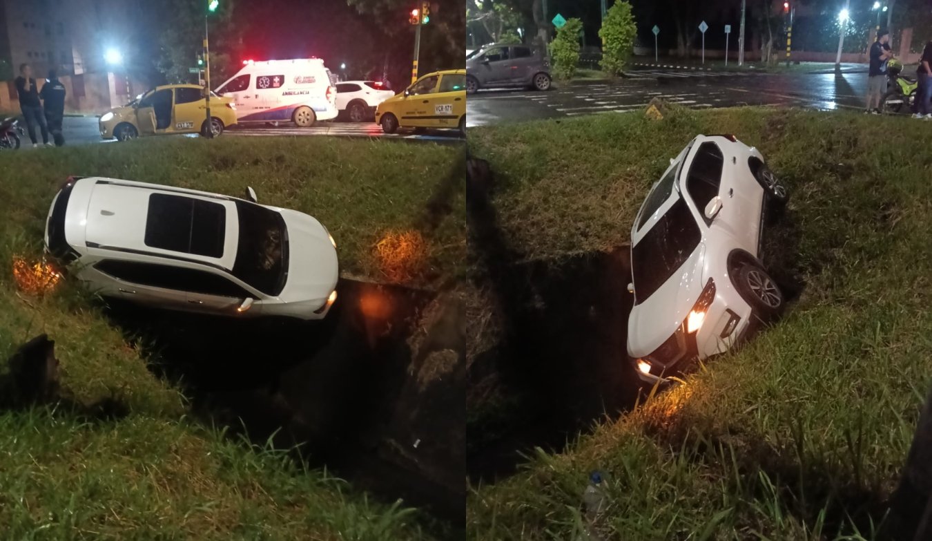 Una camioneta Nissan blanca terminó sumergida en un canal de aguas residuales en el sur de Cali. El accidente ocurrió hoy durante la madrugada en el barrio El Ingenio. Los habitantes del sector reportaron el vehículo tras escuchar un fuerte impacto cerca de la zona comercial.