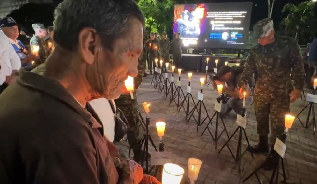 Este acto simbólico, realizado la noche de este miércoles, buscó brindar un mensaje de fortaleza a las familias de las 69 víctimas y brindar homenaje a quienes perdieron la vida en cumplimiento de su deber en el Putumayo.