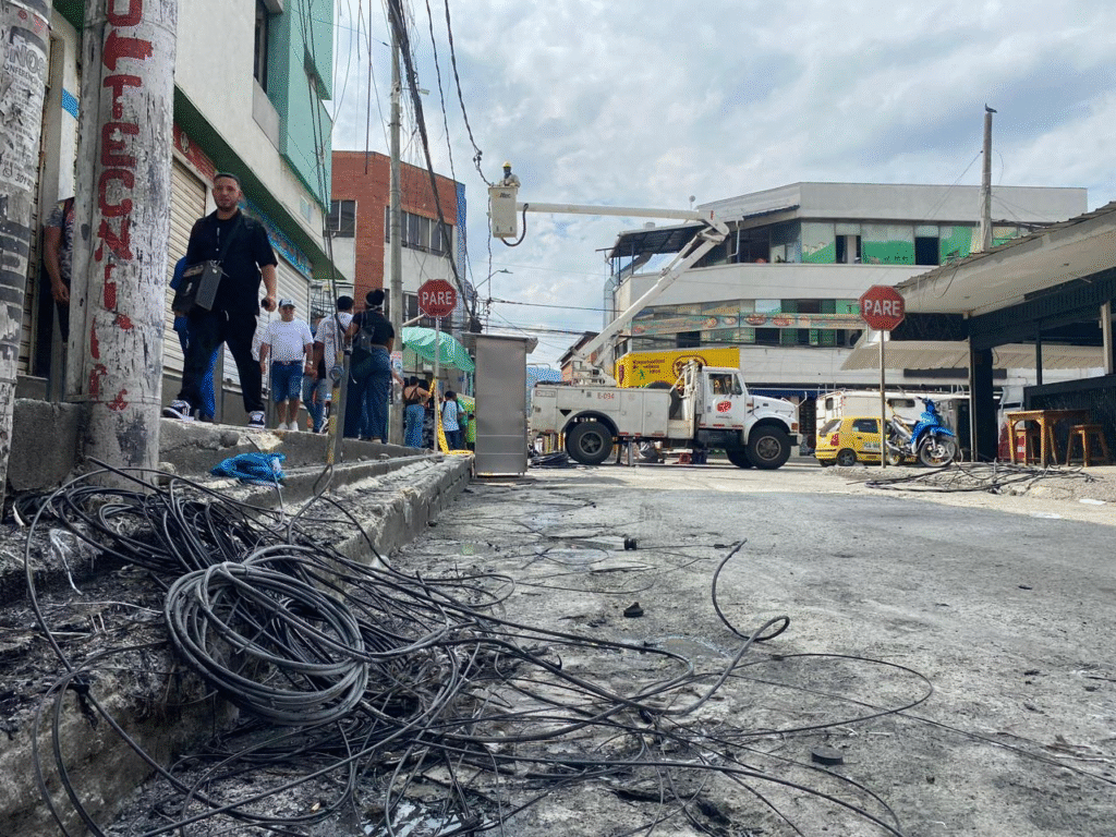 Tras asegurar el perímetro, el grupo operativo inició las labores de reparación técnica en la infraestructura afectada. La intervención incluye la reposición de más de 100 metros de cable semiaislado, elemento fundamental para el correcto funcionamiento de las redes de baja tensión que suministran energía a este punto estratégico del corazón comercial de Cali.
