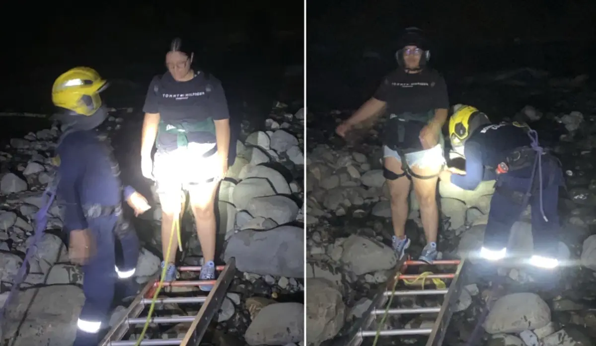 La alerta llegó a los organismos de socorro antes de las 7:00 de la noche. De inmediato, una máquina extintora y una ambulancia de la estación Meléndez salieron hacia la zona afectada. Al llegar, los rescatistas encontraron a un joven de 18 años y una mujer de 19 atrapadas en medio del río. La fuerza del agua les impidió regresar a la orilla por sus propios medios, lo que activó un operativo con equipos especializados.