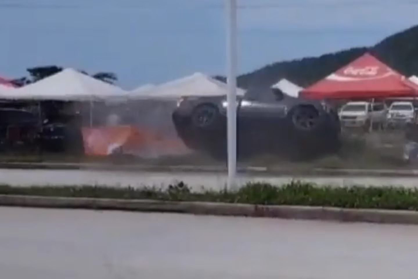 Imágenes captadas por esta casa editorial muestran el momento en que el piloto de una camioneta perdió el control y se estrelló contra las vallas de seguridad, causando heridas considerables en las extremidades inferiores de una persona que formaba parte de la organización del evento. Rápidamente, el herido fue trasladado a la sala de urgencias de la clínica más cercana.