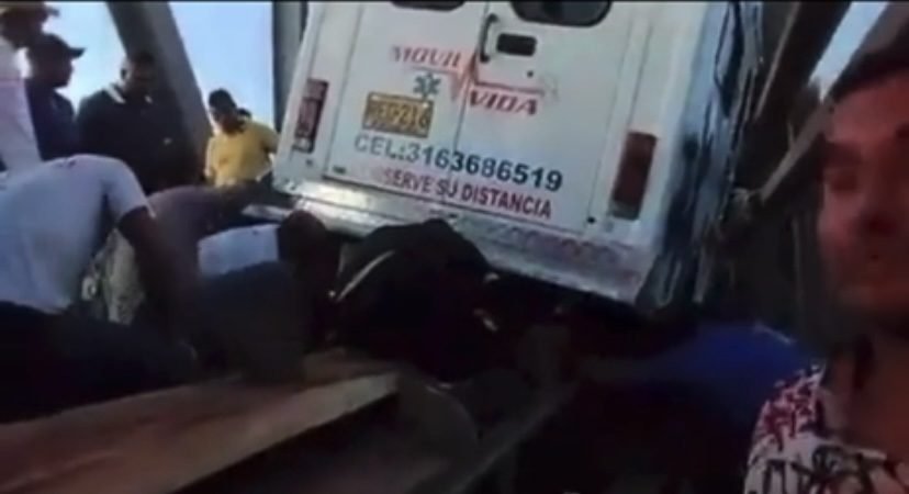 Una ambulancia que transitaba por el lugar, se salió de su carril y quedó colgando del puente corriendo el riesgo de caer al vacío.