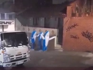En las calles de Antioquia, se pudo presenciar una escena realmente peculiar en medio de un aguacero. Varias personas valientes y creativas decidieron desafiar la lluvia y se lanzaron a las calles, vestidas con disfraces de tiburones.