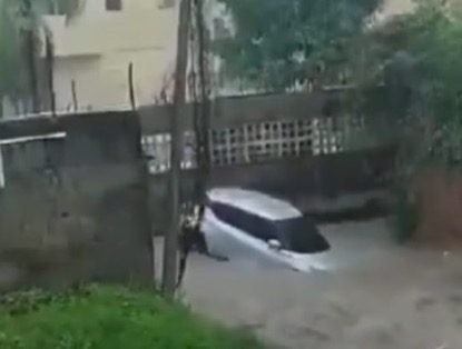 ¡Como de película! Las fuertes lluvias que se presentaron en Cartagena el día de hoy, provocaron que un vehículo ocupado por una pareja quedaran atrapados y arrastrados por un arroyo.