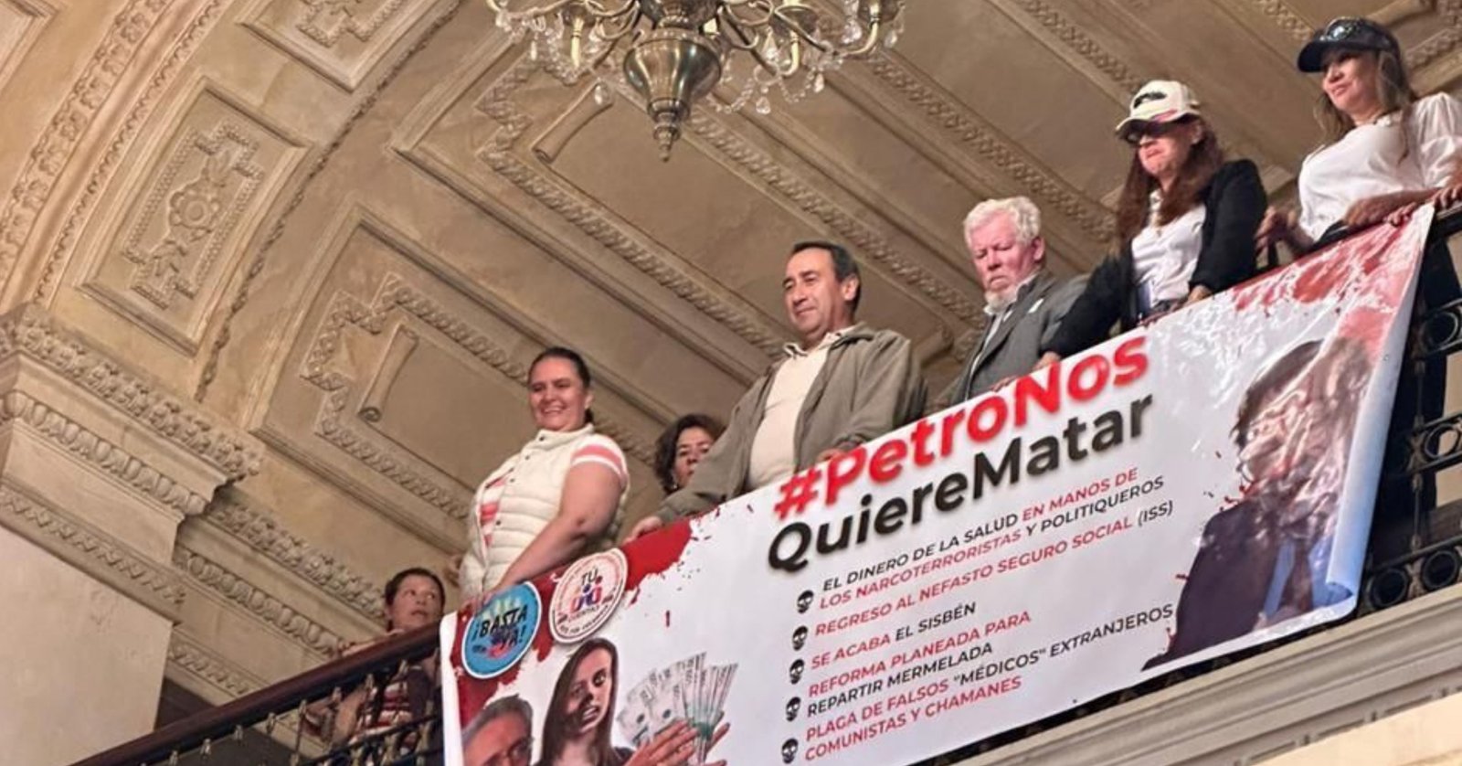 Durante el segundo debate sobre la Reforma a la Salud, algunos asistentes que estaban en en salón elíptico exhibieron un cartel que decía: “Petro nos quiere matar”.