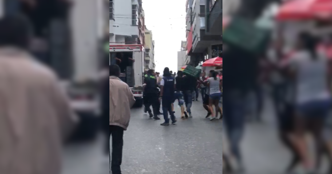 La escena ocurrió en el centro de Armenia donde se generó una fuerte riña entre algunas personas y dos uniformados de la Policía.