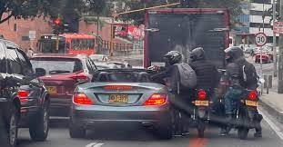 El conductor de un carro convertible fue atracado en la carrera sétima con calle 85 en la capital del país. A través de redes sociales se viralizó un video en el que se ve a tres ladrones en dos motos cometiendo un robo.