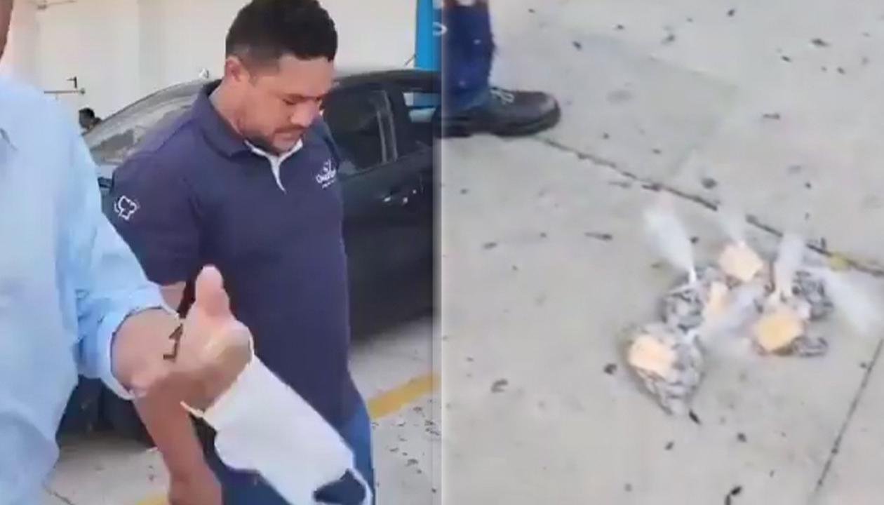 La empresa recaudadora no quiso recibirle el pago para ponerse al día con la deuda, por tratarse de la alta suma de dinero, en monedas. En el video que rápidamente se volvió viral en redes sociales, se puede ver cómo su acompañante expresó la inconformidad a las afueras del establecimiento.