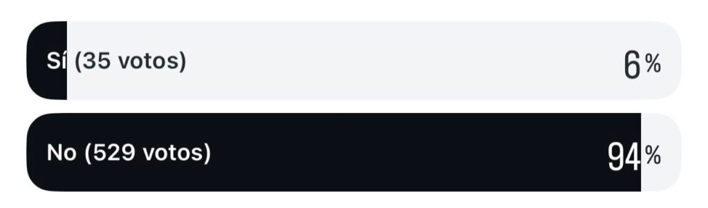 En Instagram, la encuesta formulada con la misma pregunta obtuvo 564 votos en total, de los cuales 94% votó en contra y solo un 6% apoyó la medida.
