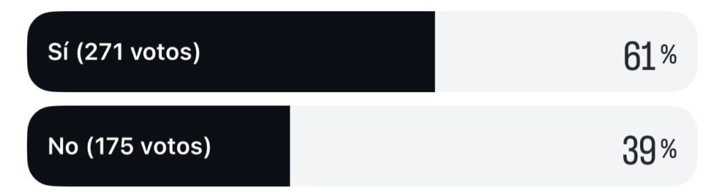 En la red social X, los resultados fueron similares. Con el 63% de votos a favor  y 37% en contra, los usuarios mantuvieron una tendencia positiva hacia la nueva regulación.