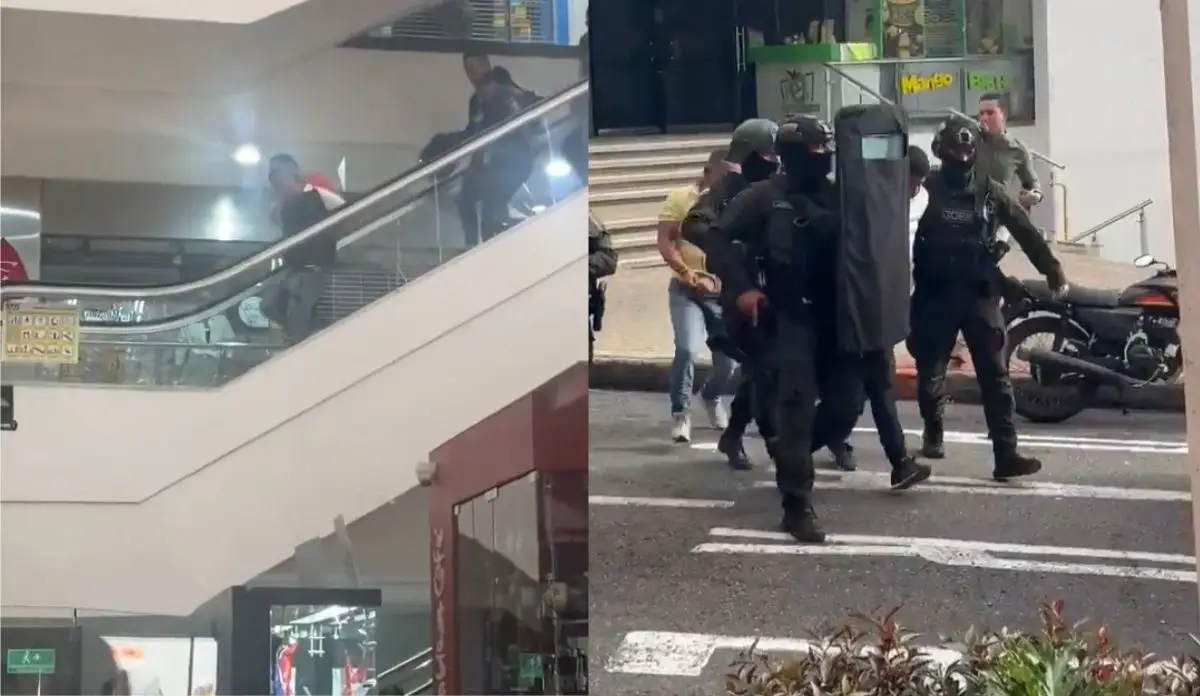 El enfrentamiento se registró hacia las 2:00 p.m. en el cuarto piso del centro comercial, donde la banda criminal, que ya había accedido a la Joyería Caracas, se encontró con la reacción de un Intendente Jefe de la Policía Nacional que se encontraba en el lugar, al parecer de civil.