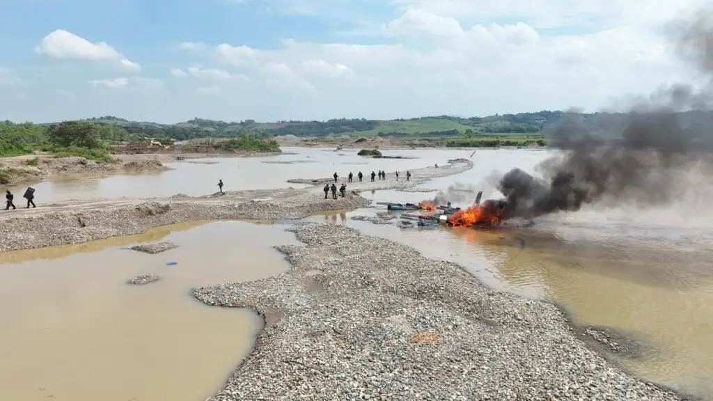 La operación permitió frenar un grave daño ambiental. La minería ilegal utilizaba sustancias altamente peligrosas como mercurio y cianuro, que terminaban vertidas directamente en el río Cauca.