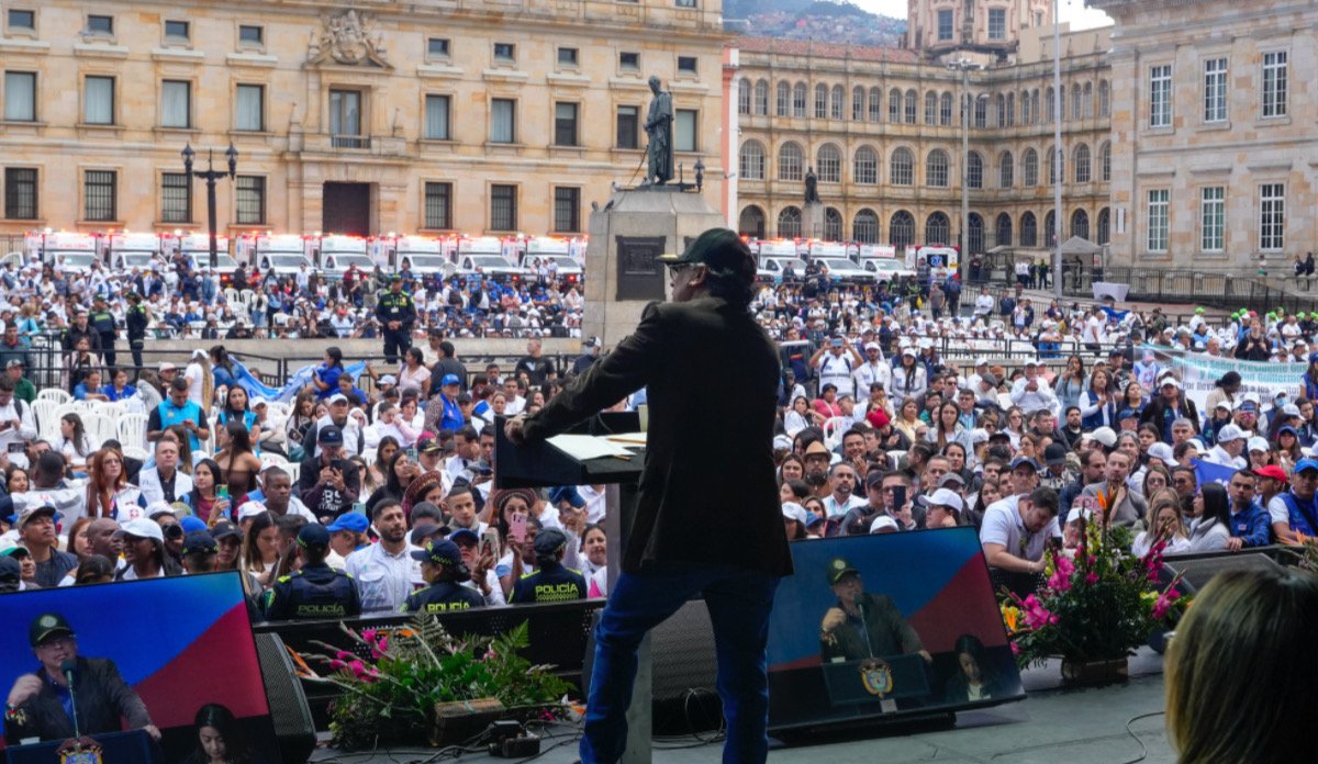 El presidente Gustavo Petro pidió organizar lo que llamó la manifestación más grande de Colombia para respaldar la reforma al sistema de salud. El anuncio lo hizo durante el Encuentro Nacional de Salud, realizado en la Plaza de Bolívar, en Bogotá, donde se reunieron delegaciones de equipos básicos de salud de distintas regiones.