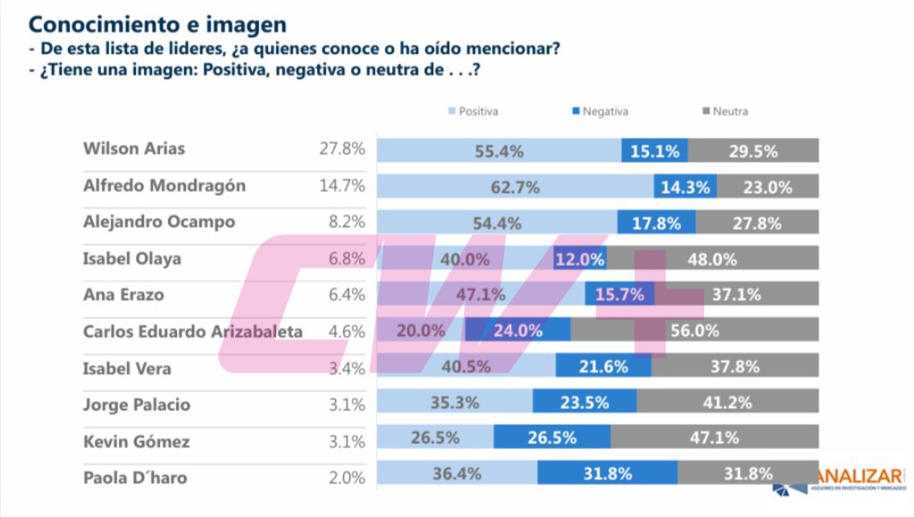 El otro nombre que aparece en la encuesta de AsoEmpresarios es el gerente de EmCali Roger Mina, quien le dijo a CW+ que no tenía intenciones de lanzarse a la alcaldía de Cali. Sin embargo, fuentes del Pacto le confirmaron a este medio que sí existe una intención por parte de él para buscar el apoyo de esa colectividad, pero desde el partido no ven con buenos ojos aliarse con alguien que hace parte de la administración del alcalde Alejandro Eder, a quien le han hecho una fuerte oposición.