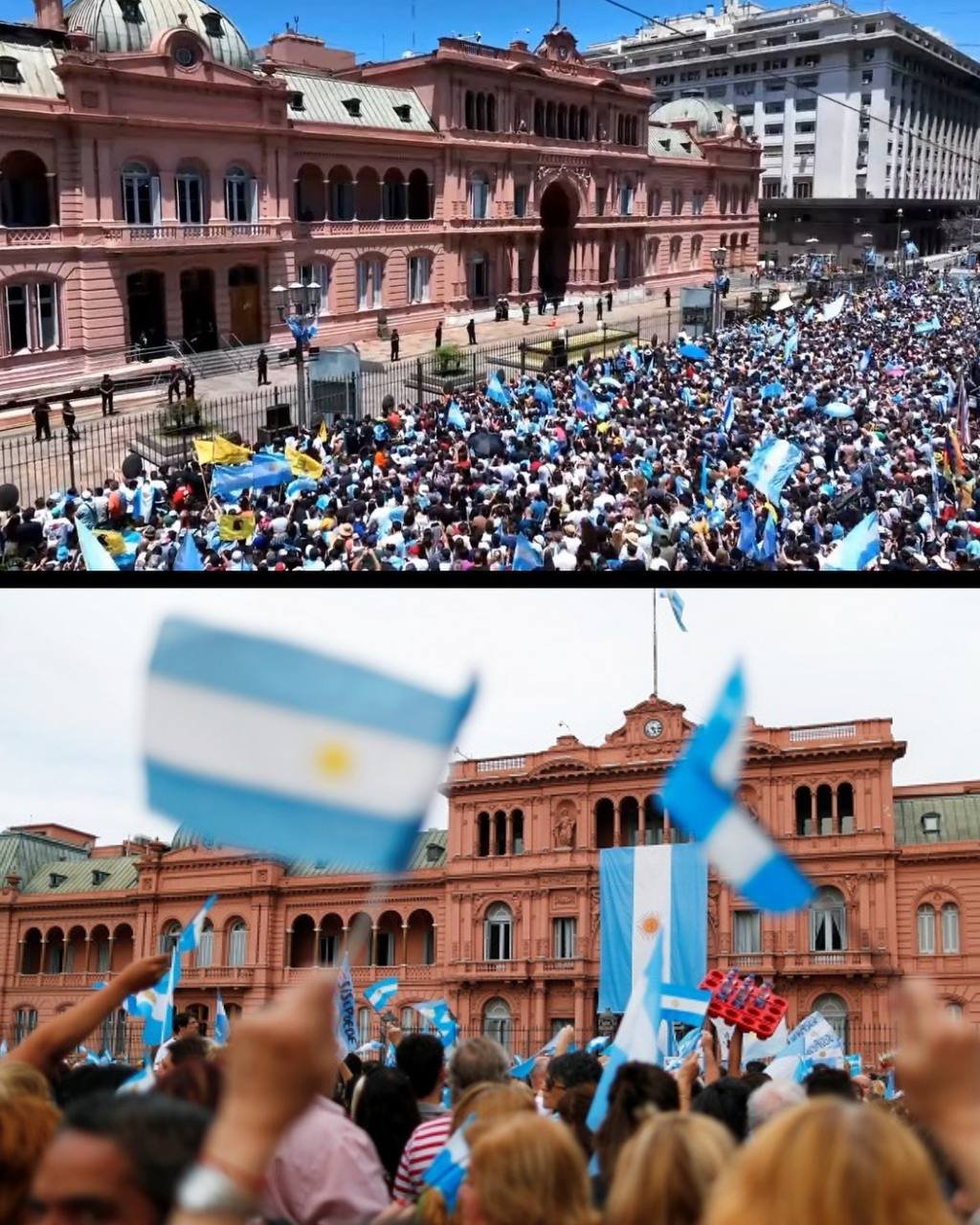 Además, cumplió con una de las tradiciones más arraigadas en Argentina: el saludo desde el balcón de la Casa Rosada y su primer discurso.