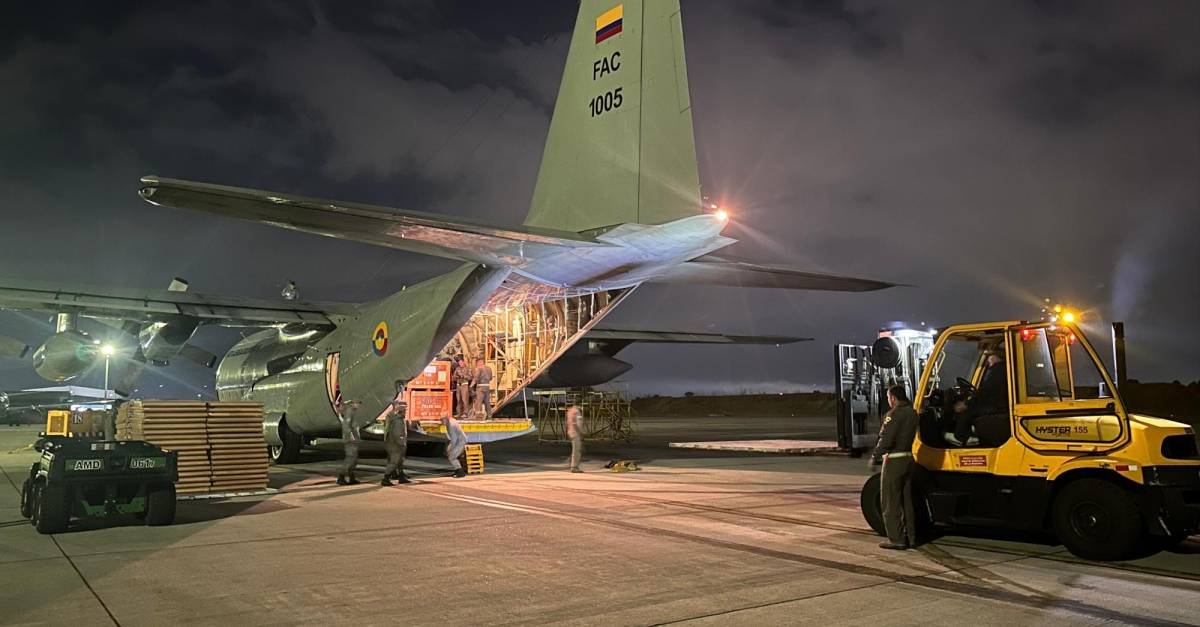 Un avión C-130 Hércules arribó en este país con el fin de recoger un equipo especial que apoyará el control de los incendios forestales que se presentan en este momento en Colombia.