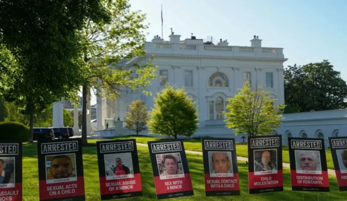 El 28 de abril Washington amaneció con un paisaje inusual frente a la Casa Blanca; una serie de carteles con rostros de inmigrantes detenidos por diversos crímenes fueron desplegados en los jardines, con la intención de resaltar la política migratoria de línea dura impulsada por el presidente Donald Trump desde su regreso a la presidencia en enero de 2025.