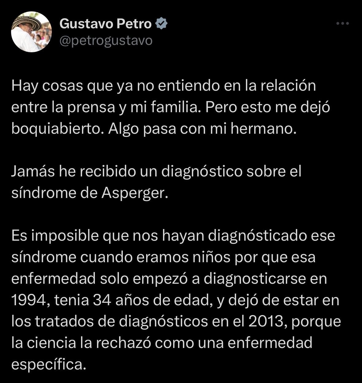 El hermano del presidente Gustavo Petro confirmó que su hermano padece del síndrome de Asperger.