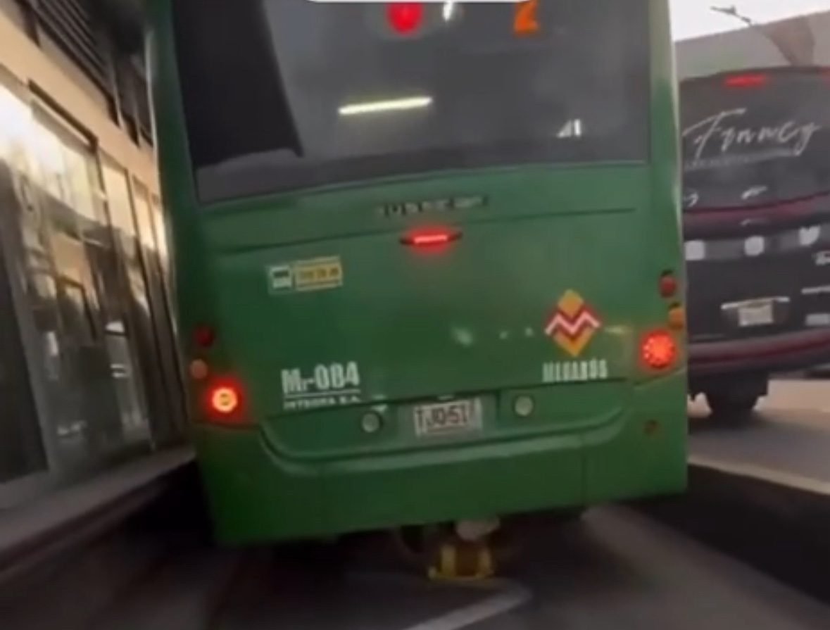 Luego este hombre estando agarrado de alguna estructura debajo del bus, se movilizó por la ciudad hasta llegar a la siguiente estación.