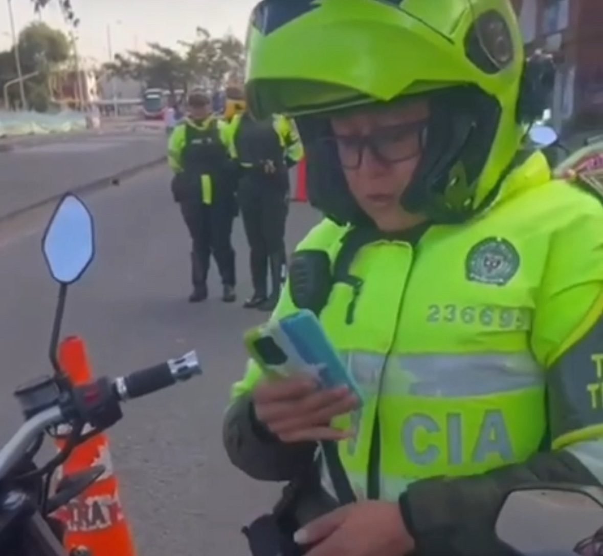 La uniformada detuvo a otro motociclista y le pidió los documentos para hacerle un comparendo por supuesto cambio de color en la moto.
