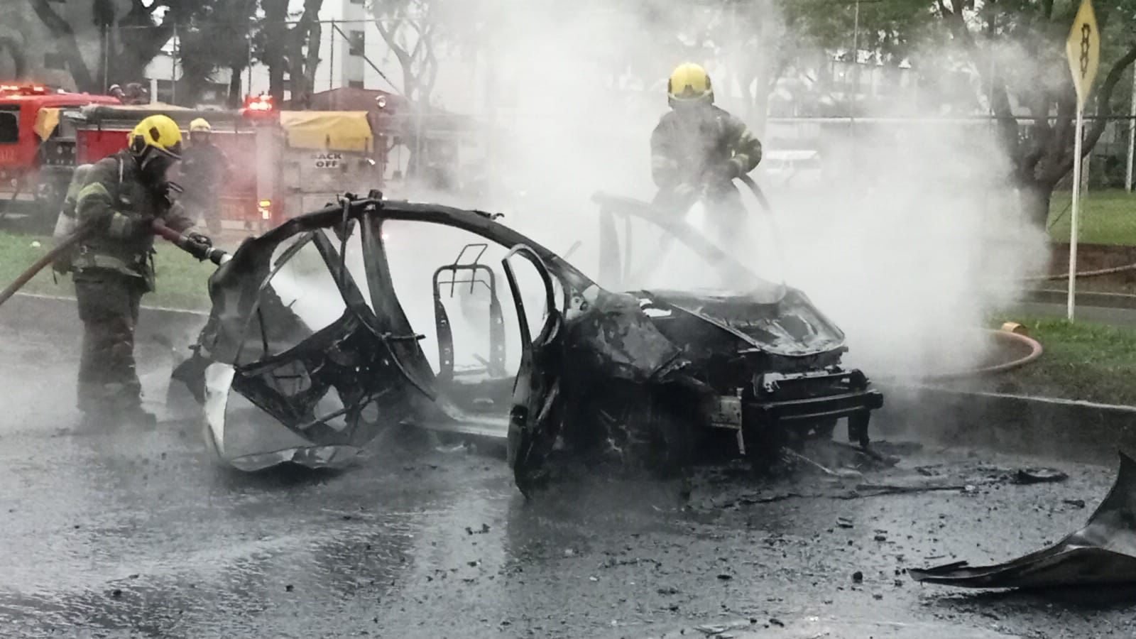 Al parecer un vehículo tipo taxi se incendió hasta quedar consumido. No hubo lesionados en el sitio.
