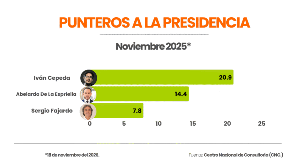 Finalmente, Cepeda se convirtió en el candidato oficial del Pacto Histórico tras ganar la consulta del 26 de octubre con 1,7 millones de votos frente a los 670 mil de Carolina Corcho. Además de Cifras y Conceptos, a mediados de noviembre el Centro Nacional de Consultoría (CNC) publicó otra que volvió a situar a Cepeda en un 20,9% y a Abelardo De La Espriella en un 14,4%. Les siguieron Sergio Fajardo (7,8%) y Claudia López (5,0%).
