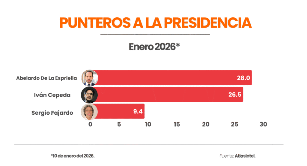 La encuesta AtlasIntel, publicada el 10 de enero por la Revista Semana, fue la primera del año nuevo y en el cual se celebrarán las elecciones. Por primera vez, Abelardo De La Espriella superó a Iván Cepeda: obtuvo una intención de voto del 28% frente al 26,5% del candidato del Pacto. Le siguieron Fajardo (9,4%), Juan Carlos Pinzón y Paloma Valencia, con un 5,1% cada uno.