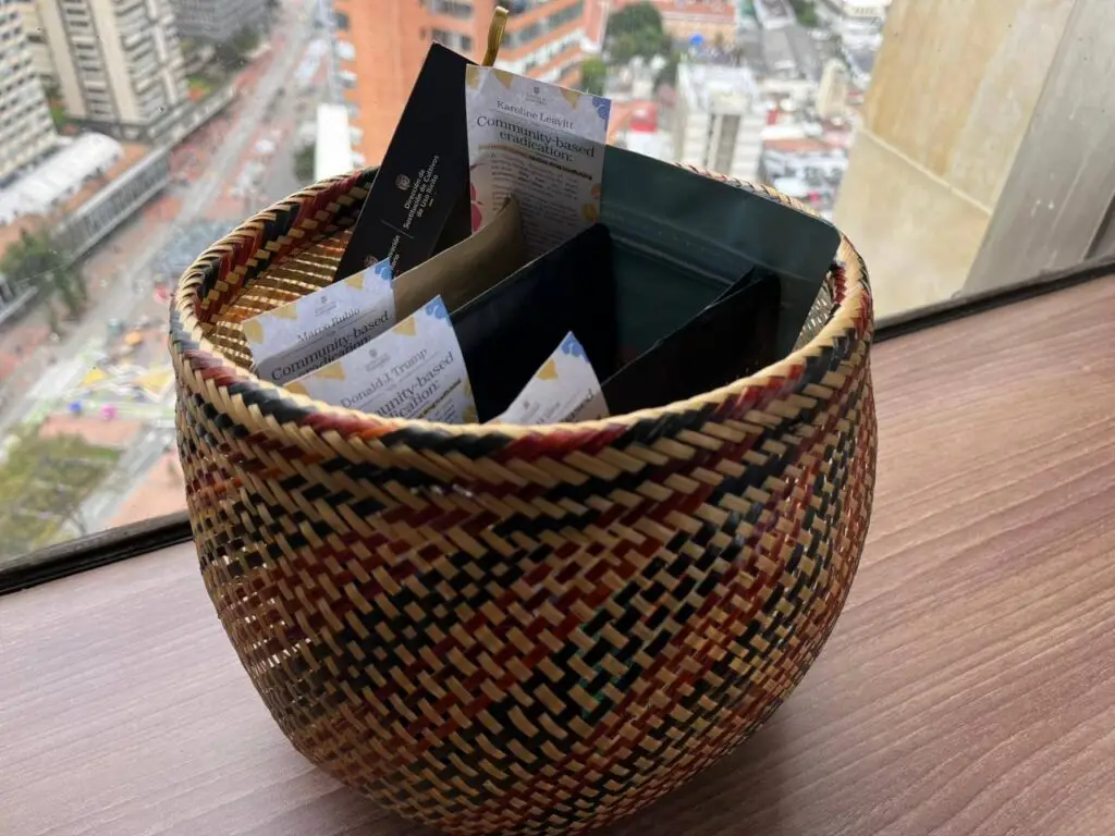Petro le entregará a Trump una ancheta con cafés de especialidad y chocolates de exportación producidos por 20.300 familias que sustituyeron sus cultivos ilícitos en Argelia, Cauca. Esto, como símbolo de la lucha contra el narcotráfico. Por otro lado, también entregará un vestido tejido para su esposa, la primera dama Melania Trump, diseñado por la casa Hajsú Etnomoda, de la diseñadora indígena nariñense Flor Imbacuán Pantoja.