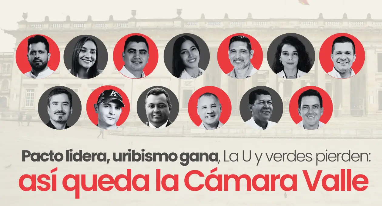 Con el 99,8% de las mesas informadas por la Registraduría en el preconteo, la Cámara de Representantes por el Valle del Cauca ya perfila sus trece curules. El Pacto Histórico lidera con 6 escaños; el Centro Democrático y el Partido de la U obtienen 2 cada uno, mientras que Cambio Radical, Nuevo Liberalismo y el Partido Liberal cierran la lista con una curul por colectividad.