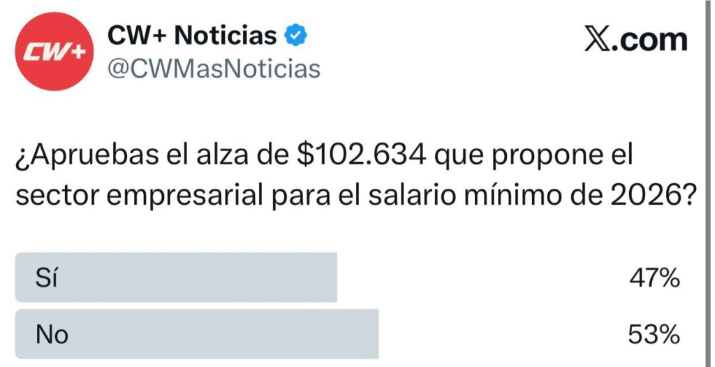 En una votación realizada en la red social X (anteriormente Twitter) por CW+ Noticias, la mayoría de los encuestados se opuso a la cifra:
