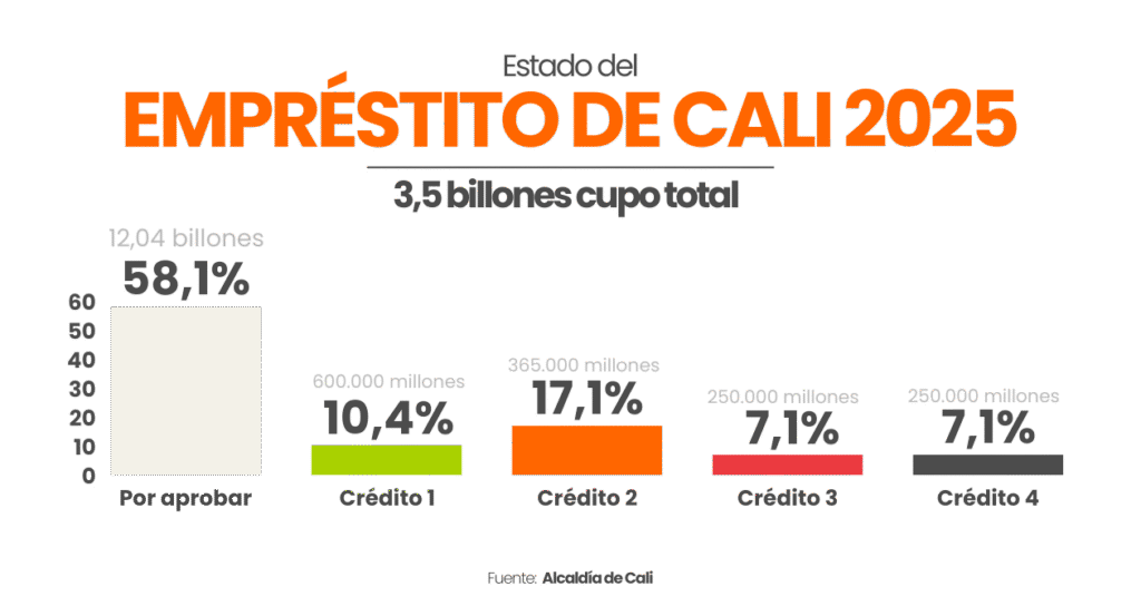 En diciembre del 2024, el Concejo de Cali le aprobó a Eder un cupo de deuda por 3.5 billones de pesos, el más alto que ha tenido la ciudad. Por eso, el alcalde aterrizó en 2025 con la promesa de empezar su ejecución, que cubre 32 proyectos de desarrollo en Cali. sin embargo, al cierre de este año, se ha liberado el 41,9% de la deuda, dividido en cuatro créditos.