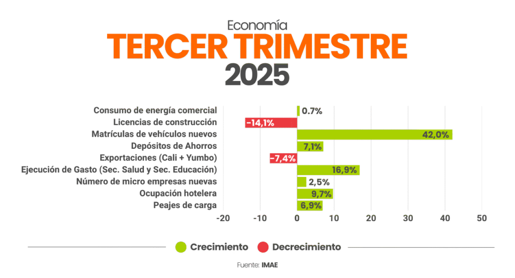 En el tercer trimestre del 2025, la economía de Cali creció 4,2%. Así lo muestra el último boletín del Indicador Mensual de Actividad Económica (Imei) de la Alcaldía y la Universidad Javeriana. Este indicador superó su promedio histórico de crecimiento de la década anterior, que se situaba en un 3,4%.